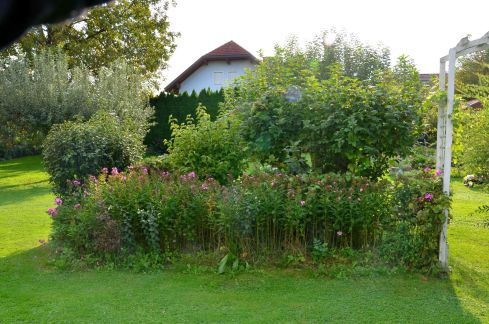 Maybe I wasn’t paying attention in Australia… but every year in Austria it surprises me just how much growth there is from spring to summer. Hubby took some pics in our back garden… the first just after he cut the trees back, the second near the end of summer when everything was at its peak. Check them out!